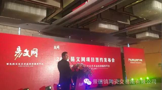 2016年11月26日,景德鎮(zhèn)陶瓷交易所和易文網(wǎng)達(dá)成戰(zhàn)略合作,項(xiàng)目簽約發(fā)布會隆重召開,景德鎮(zhèn)陶瓷交易所執(zhí)行董事周雪淞參加發(fā)布會并發(fā)表講話。